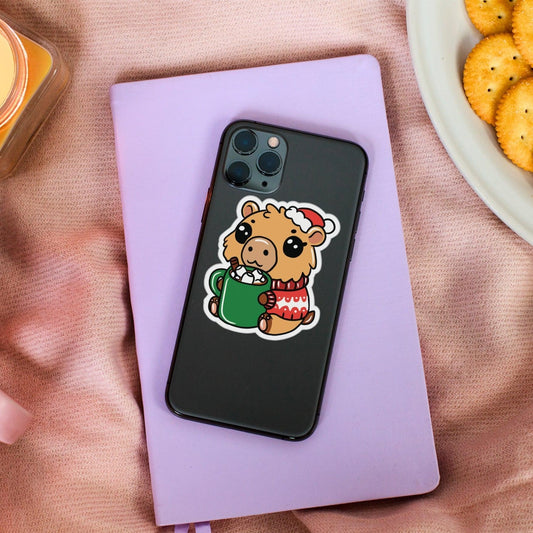 Kawaii Christmas Capybara Sticker