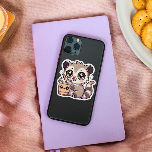 Kawaii Possum Iced Coffee Sticker