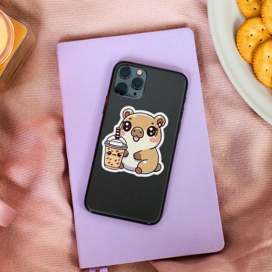Kawaii Capybara Iced Coffee Sticker