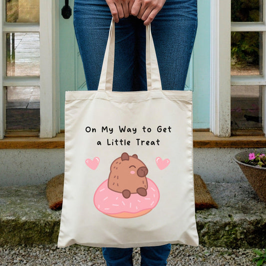 On My Way to Get a Little Treat - Cute Capybara Tote Bag