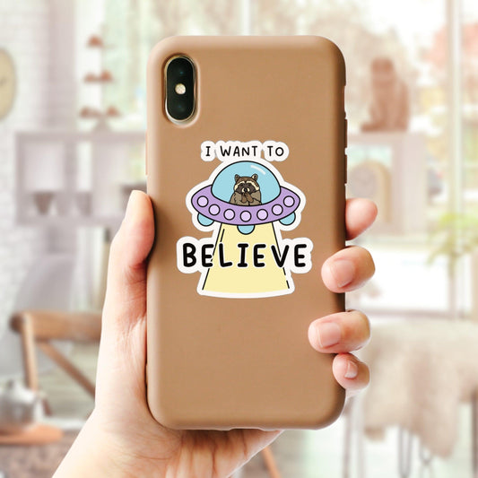 I Want to Believe - Funny Alien UFO Raccoon Meme Sticker