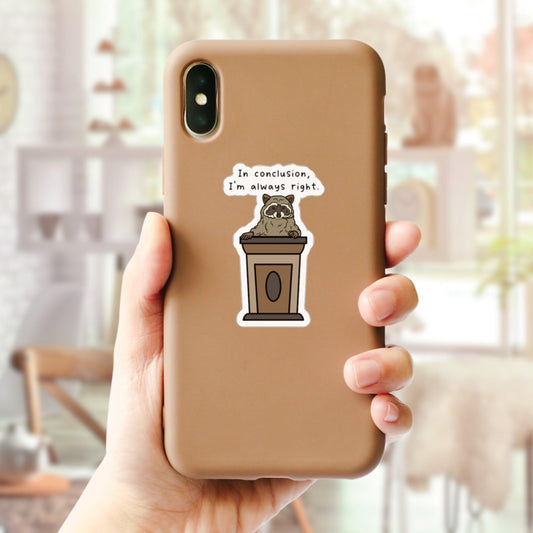 In Conclusion, I'm Always Right - Sassy Raccoon Meme Sticker